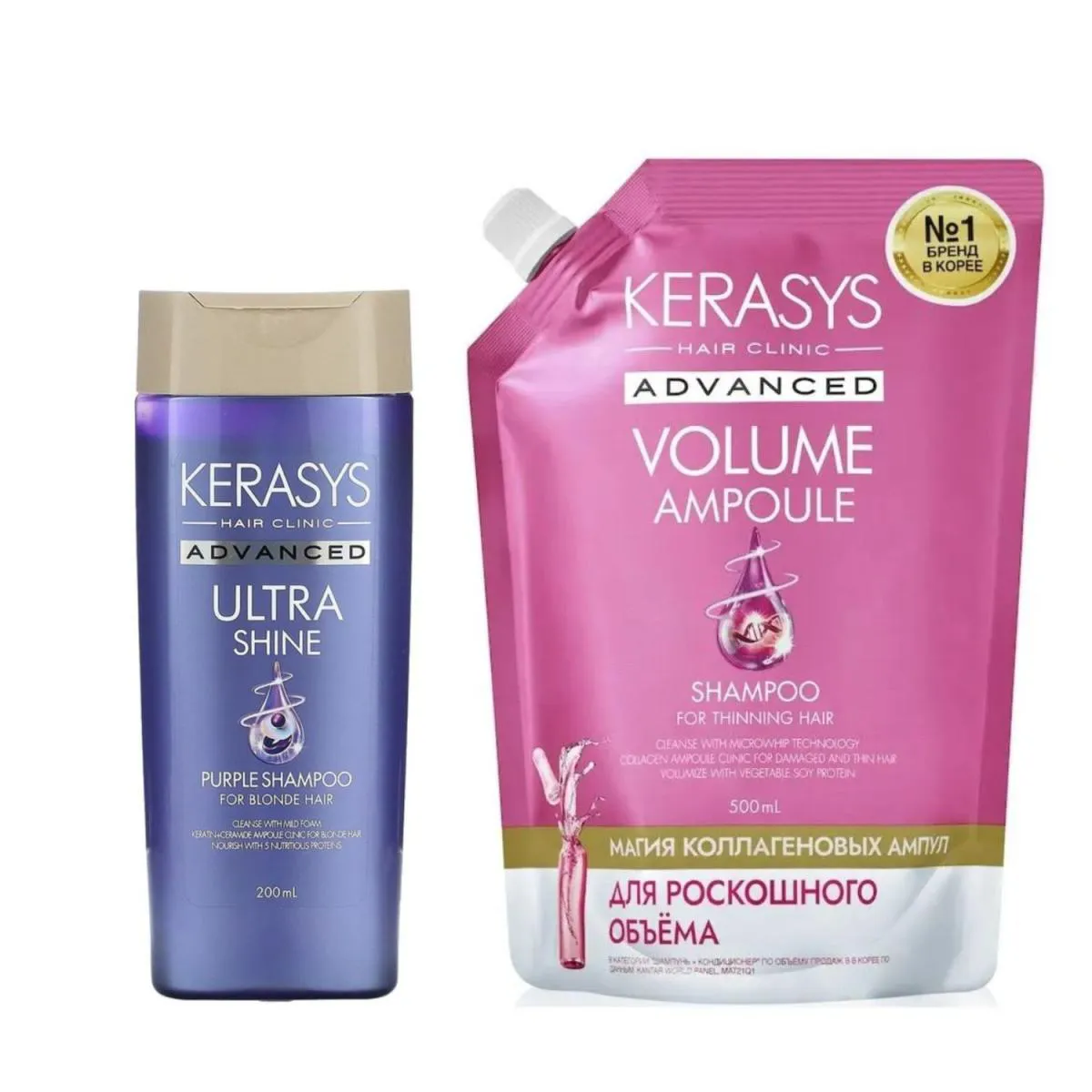 Kerasys Kit Shampoo Advanced Ampoule Volume Refil 500ml + Shampoo Matizador Advanced Ultra Shine Purple 200ml