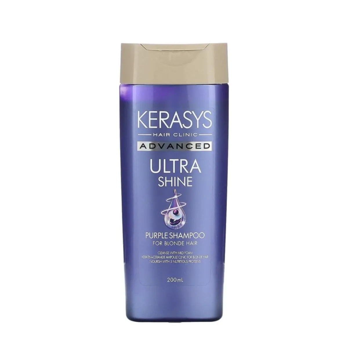 Shampoo Kerasys Matizador Purple é um produto específico para cabelos loiros que neutraliza e esfria o tom, limpa os fios e forma uma película protetora contra raios UVA e UVB. Possui tecnologias como Keratin+Ceramide Ampoule, Anti-Brass Formula e 5-Protein Complex.