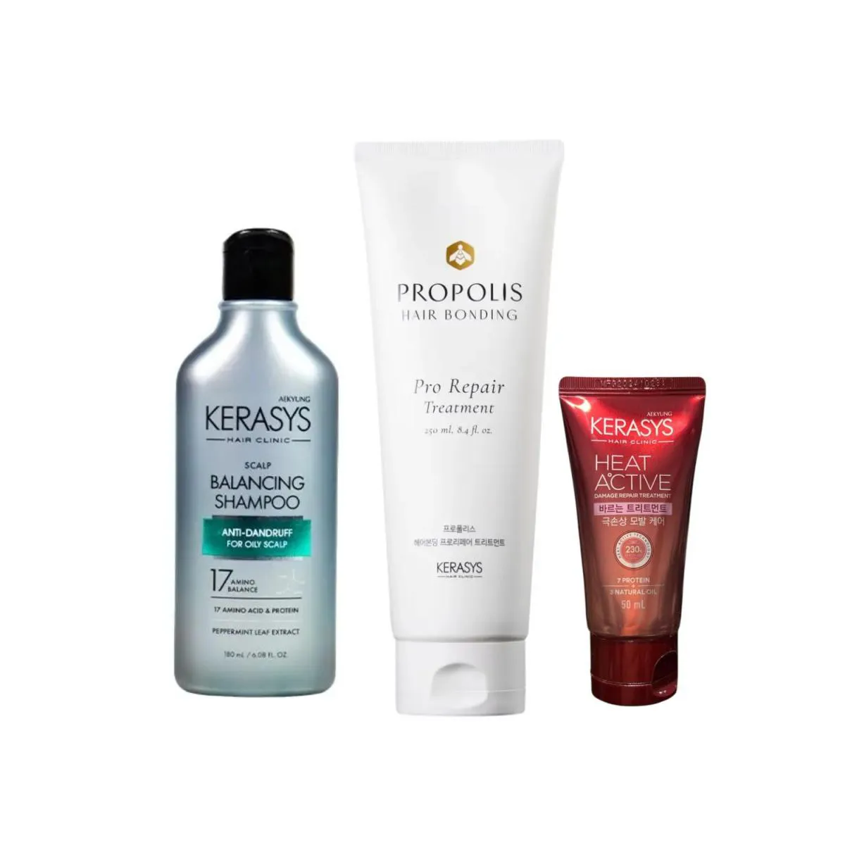 Kerasys Trio (Sh Scalp Balancing 180Ml + Máscara Propolis Repair + Leave In Heat 50Ml)