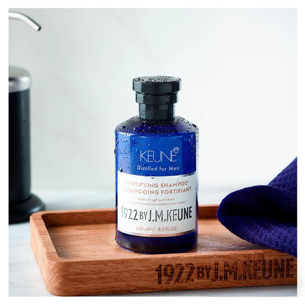 Indicado para o cabelo masculino fino, com pouca densidade e muita queda, o 1922 Fortifying shampoo de Keune deixa os fios mais encorpados, fortalecendo-os gradativamente. O produto ajuda a evitar queda e retarda o processo de calvície, na medida em que dilata os poros do couro cabeludo para a entrada da loção.