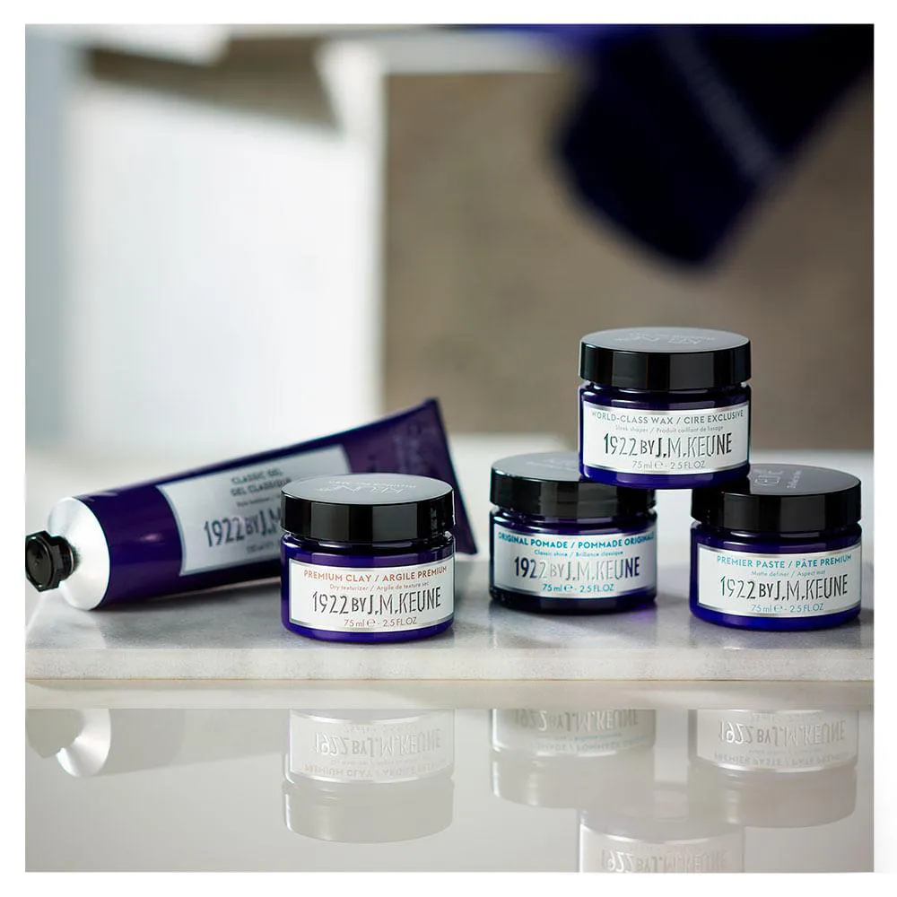Quer criar penteados firmes mas sem brilho? 1922 Premium Clay de Keune é perfeita para modelar cabelos masculinos com extra fixação e acabamento matte e criar textura e definição em cabelos curtos ou médios.