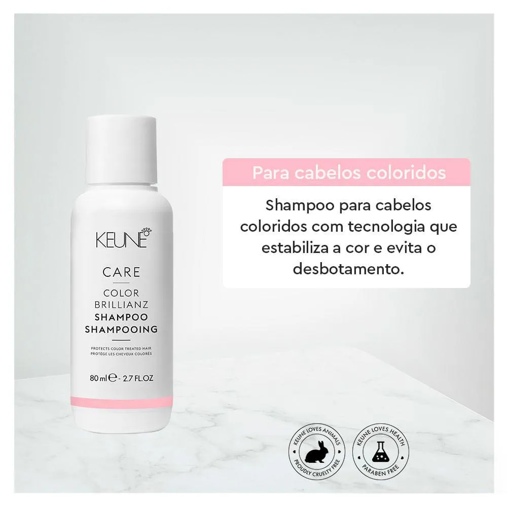 Keune Care Color Brillianz shampooShampoo Color Brillianz de Keune suave para cabelos com coloração. Desenvolvido com exclusiva Tecnologia Color Sealing Complex e Solamer confere ampla proteção UVA/UVB e evita o desbotamento da cor dos cabelos coloridos. Sua fórmula enriquecida com minerais Essenciais, LP300, Polímeros, Extrato de Semente de Girassol, Proteínas da Seda, limpa suavemente os fios, proporcionando nutrição, reparação e vitalidade aos cabelos coloridos.