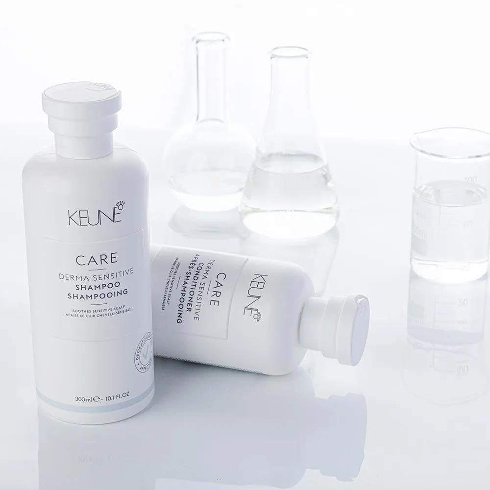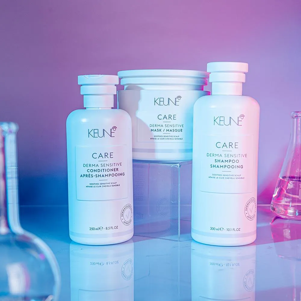 O Keune Care Derma Sensitive Conditioner é ideal para um cuidado intensivo no couro cabeludo e garante fios leves e brilhantes.