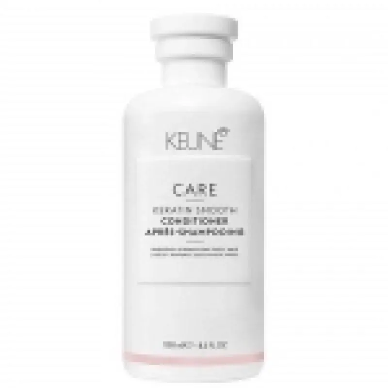 condicionador para cabelos com química. Keune Care Keratin Smooth Conditioner reduz frizz e previne quebra dos fios alisados definitivamente. Fortalece e repara o cabelo, repondo nutrientes e proteínas, para um cabelo muito mais forte e sedoso.Keune Care Keratin Smooth Conditioner repõe a queratina perdida durante processos químicos, reestruturando o fio e prevenindo a quebra, sendo ideal para cabelos com alisamento definitivo ou com mechas. Além disso, forma um filme protetor contra umidade e agressões externas, ajudando na durabilidade da química.