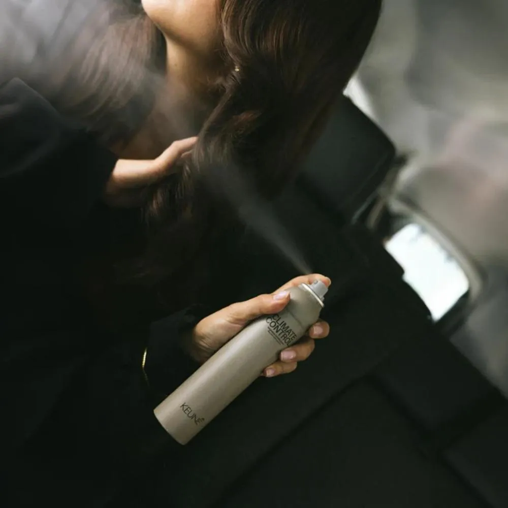 Spray finalizador leve antifrizz para todos os tipos de cabelo. Keune Style Climate Control proporciona alta proteção contra a umidade por 24 horas, sem pesar nos fios.