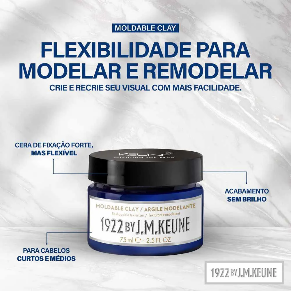 Modele, dê forma e remodele seus fios curtos ou médios com facilidade. A nova Cera Moldable Clay faz parte da tradicional linha 1922 e oferece uma fixação forte, mas flexível, e também um acabamento fosco, sem brilho.