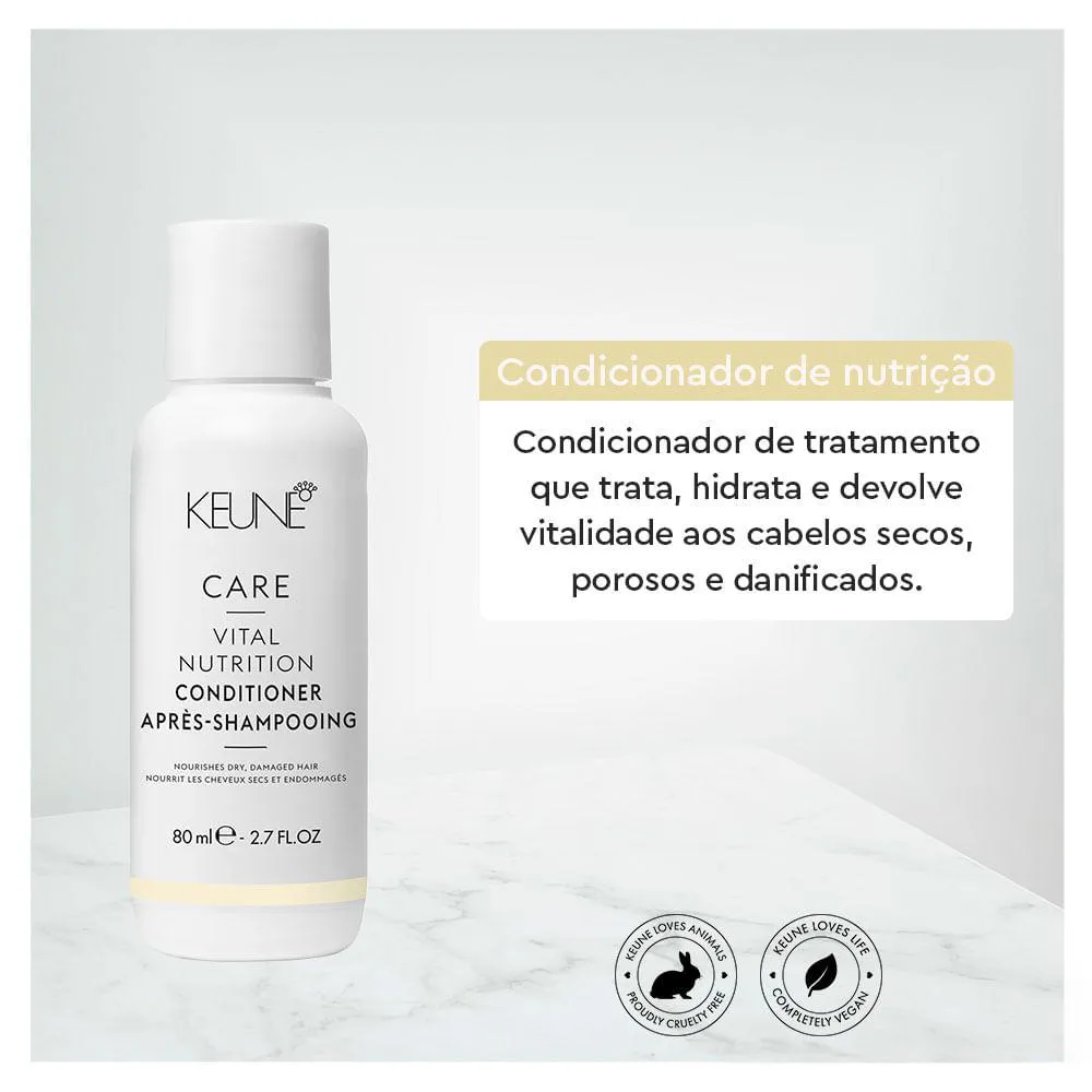 A falta de cuidados faz com que os fios percam a umidade natural, e alguns componentes importantes, resultando em um cabelo frágil e poroso. Para recuperação intensiva dos cabelos danificados, a Keune desenvolveu a linha Care Vital Nutrition, com a inovadora Tecnologia Nutri-Injection que forma uma camada protetora, regenerando e revitalizando os fios danificados. O condicionador Vital Nutrition dá aquela vida de novo a seus cabelos. Se surpreenda com o condicionador da Keune.