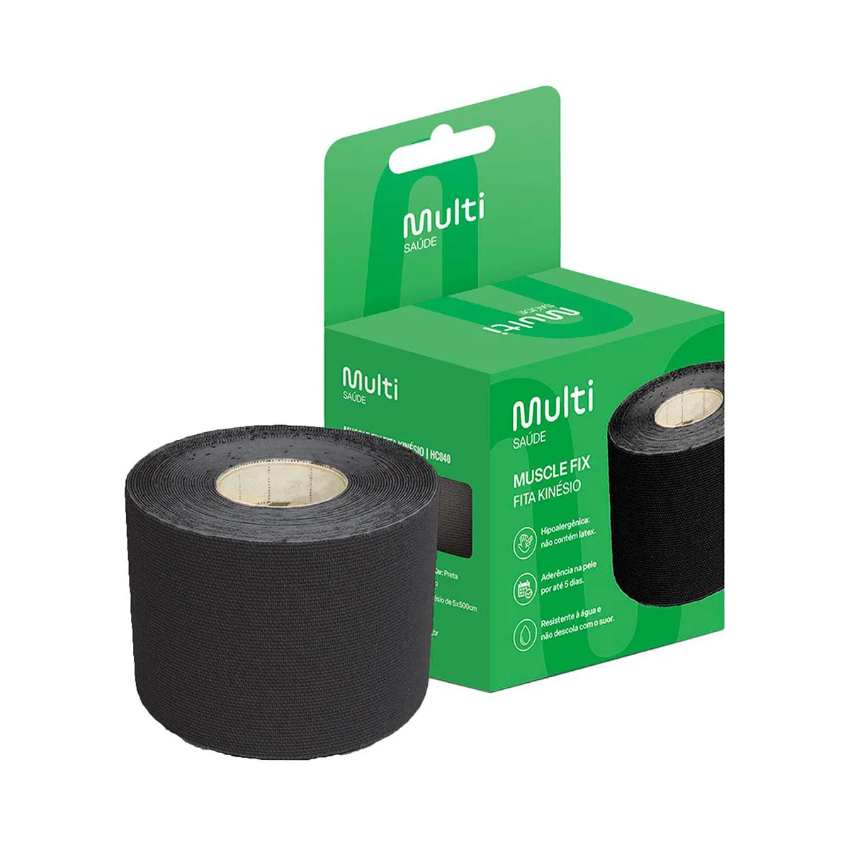 Fita Kinesio Multi Saúde Muscle Fix 5cm x 5m Rolo Preta