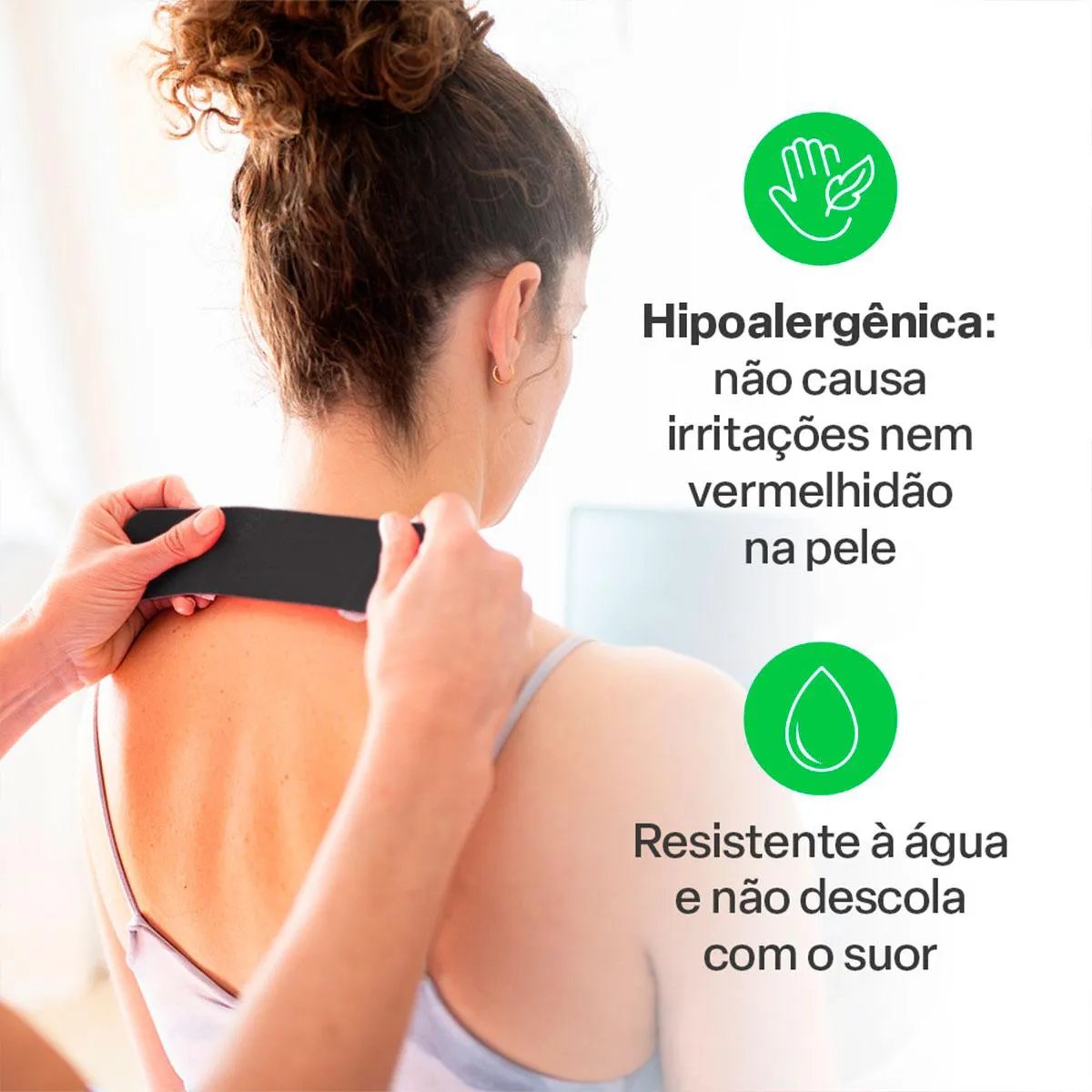 - Fita kinesio que oferece suporte e estabilidade para músculos e articulações.