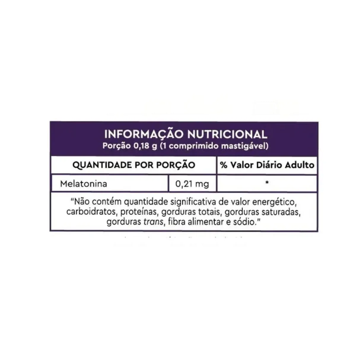 Composição: Melatonina, agente de massa sorbitol, antiumectante dióxido de silício, aromatizante, corante vermelho 40 e edulcorante, sucralose.