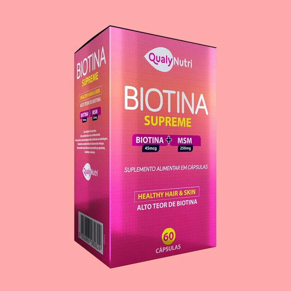 Você merece o melhor cuidado para realçar sua beleza natural, e a Biotina Supreme é a chave para alcançar cabelos exuberantes e unhas impecáveis. Desenvolvido pela Qualynutri com a mais alta qualidade, nosso suplemento de biotina vai além das expectativas, proporcionando resultados que você vai adorar.