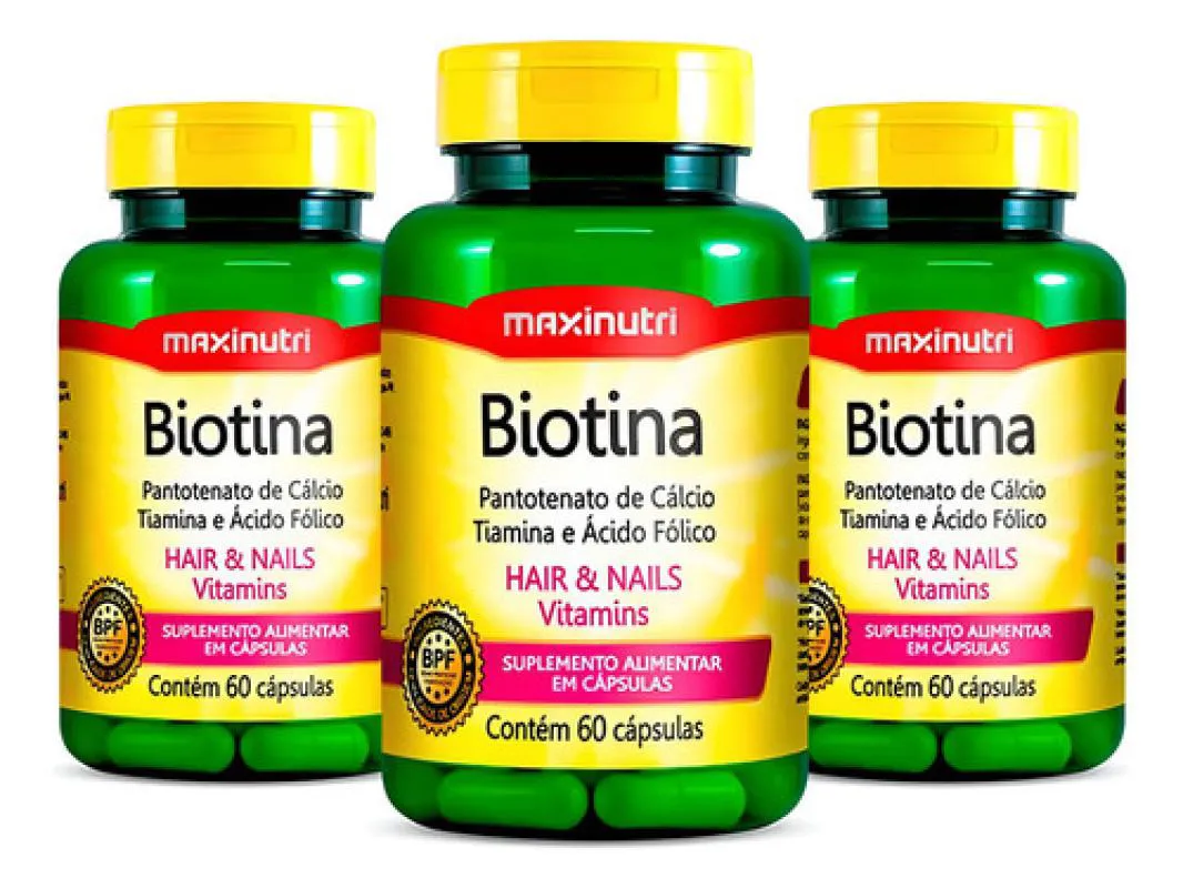 A Biotina Maxinutri possui em sua fórmula uma combinação de ativos como Biotina, vitamina B1, vitamina B5 e ácido fólico.