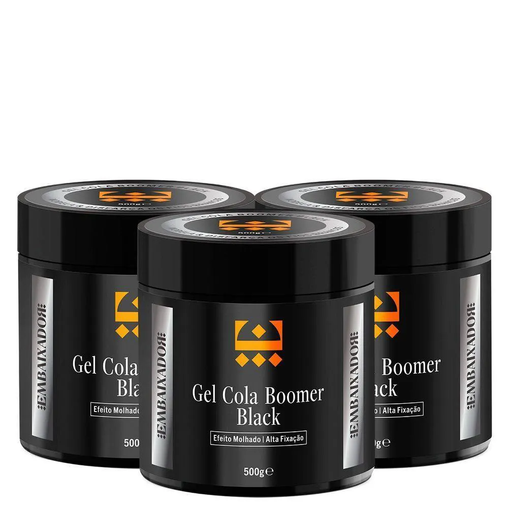 KIT 03 GEL COLA BOOMER BLACK EMBAIXADOR 500G