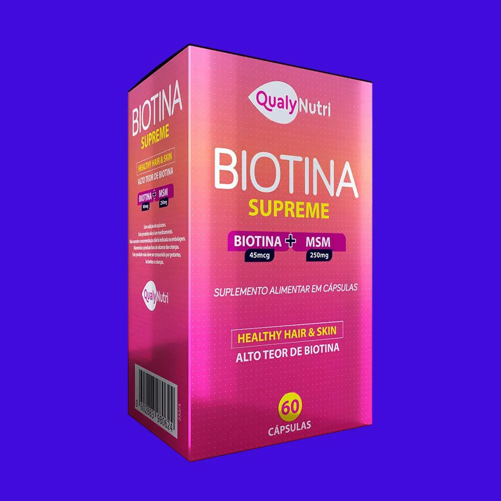 Você merece o melhor cuidado para realçar sua beleza natural, e a Biotina Supreme é a chave para alcançar cabelos exuberantes e unhas impecáveis. Desenvolvido pela Qualynutri com a mais alta qualidade, nosso suplemento de biotina vai além das expectativas, proporcionando resultados que você vai adorar.