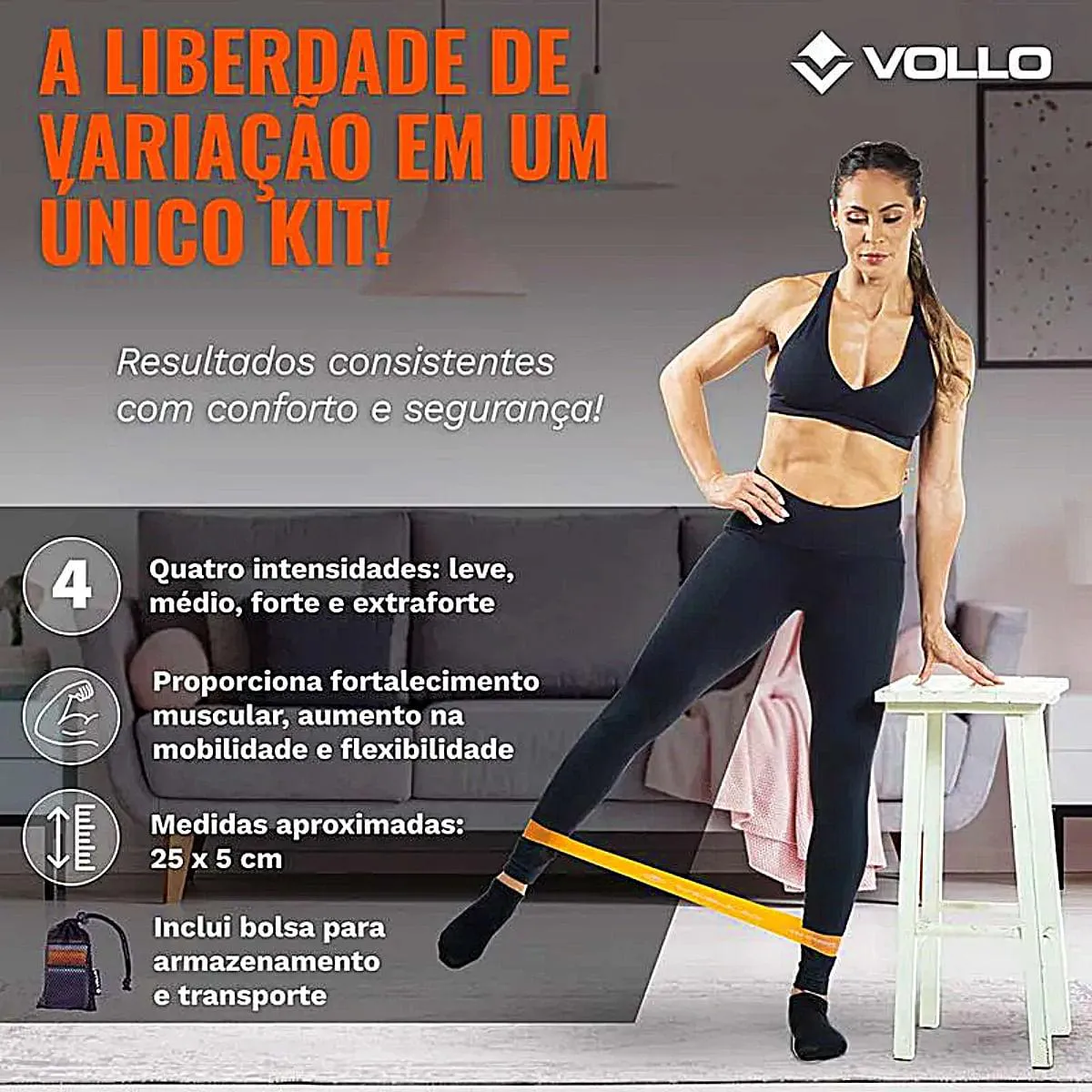 Kit 04 Faixas Elásticas Mini Bands Vollo VP1081
