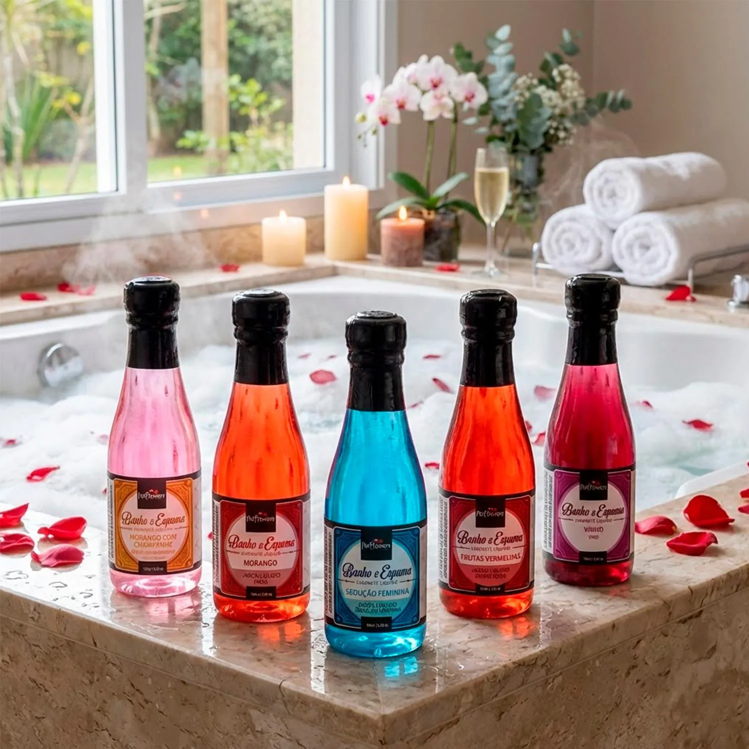 Escolha o aroma ideal para o seu dia e adicione a quantidade desejada diretamente sob a água corrente. Ao ligar os jatos da hidromassagem, a movimentação ativará a formação de uma espuma rica, perfumada e volumosa, proporcionando um ambiente de total conforto.