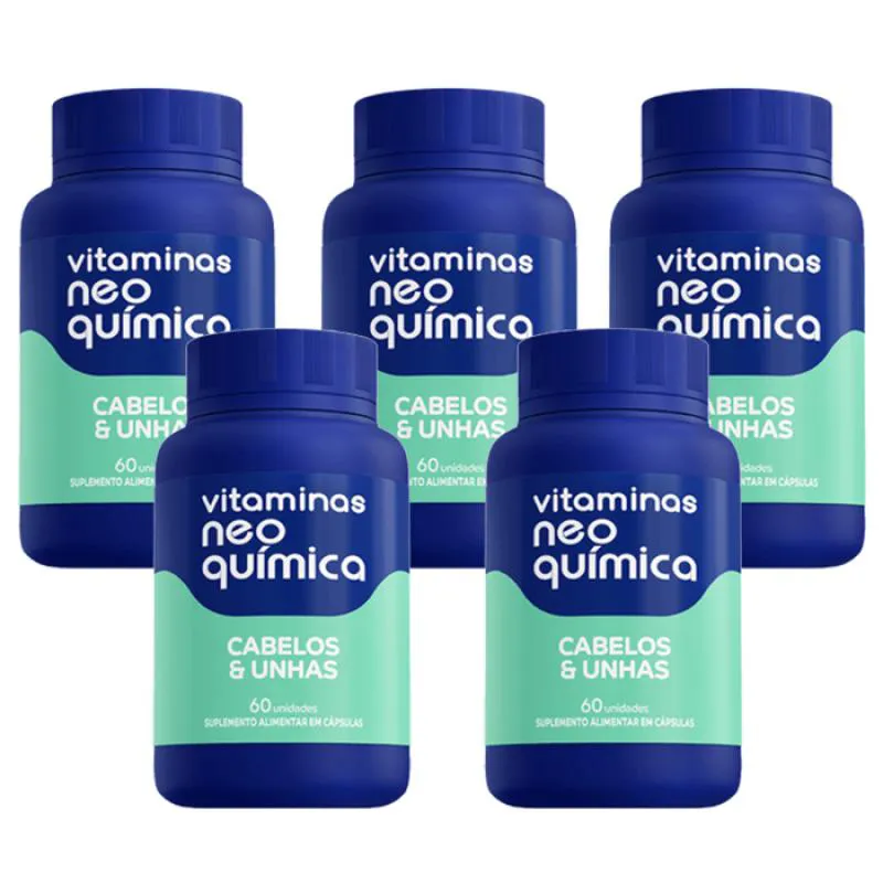 Kit 05 unidades de vitamina Neo Química Cabelos e Unhas 60 Cápsulas cada