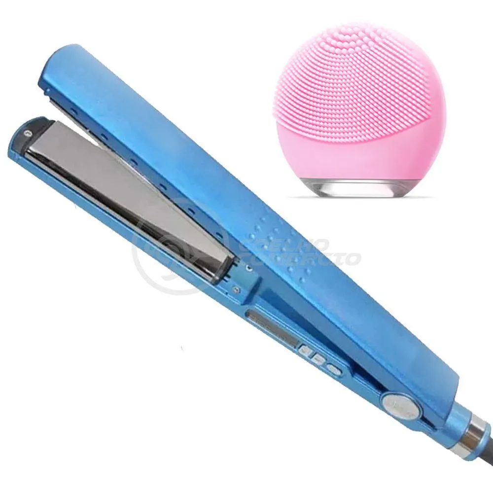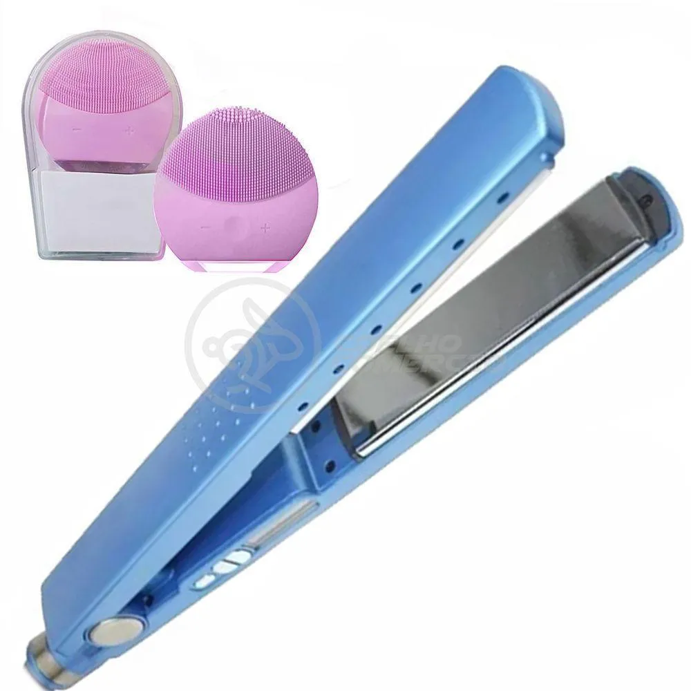 Kit 1 Prancha Nanotitanium + 1 Esponja Facial Rosa Bebê Nº12