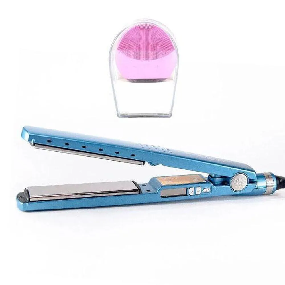 Kit 1 Prancha NanoTitanium + 1 Esponja Facial Rosa Bebê Nº1
