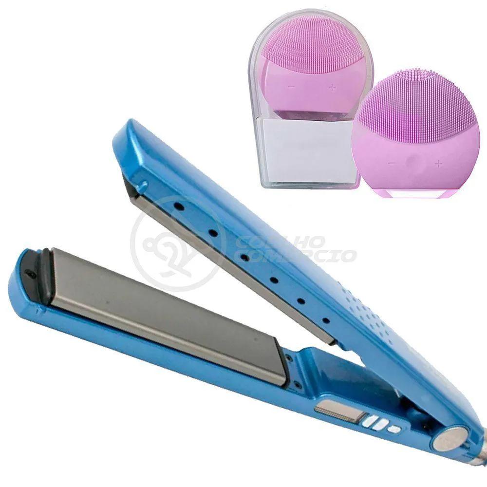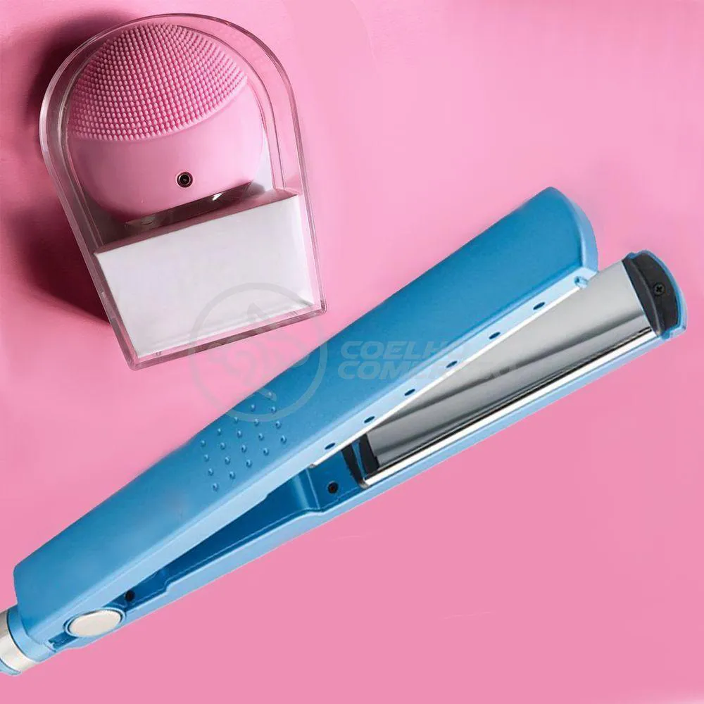 Kit 1 Prancha Nanotitanium + 1 Esponja Facial Rosa Bebê Nº1