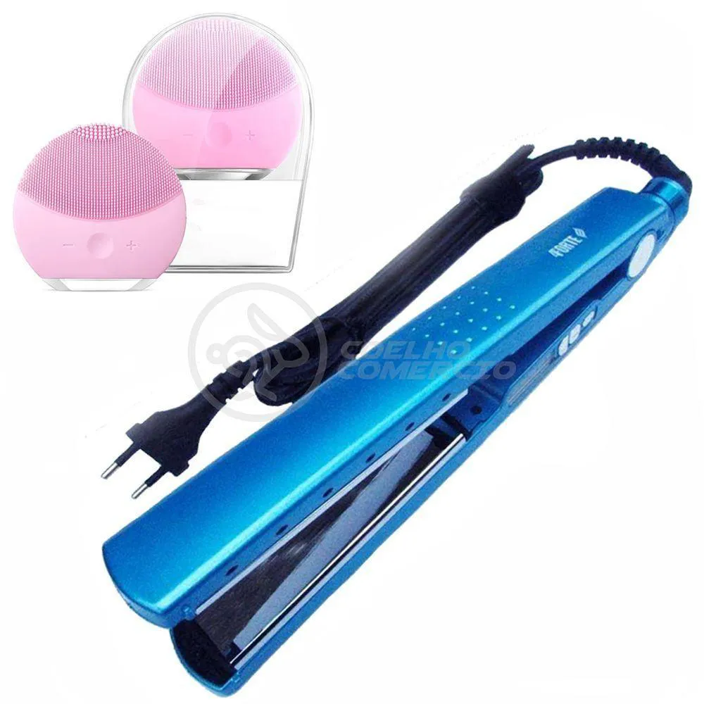 Kit 1 Prancha Nanotitanium + 1 Esponja Facial Rosa Bebê Nº23