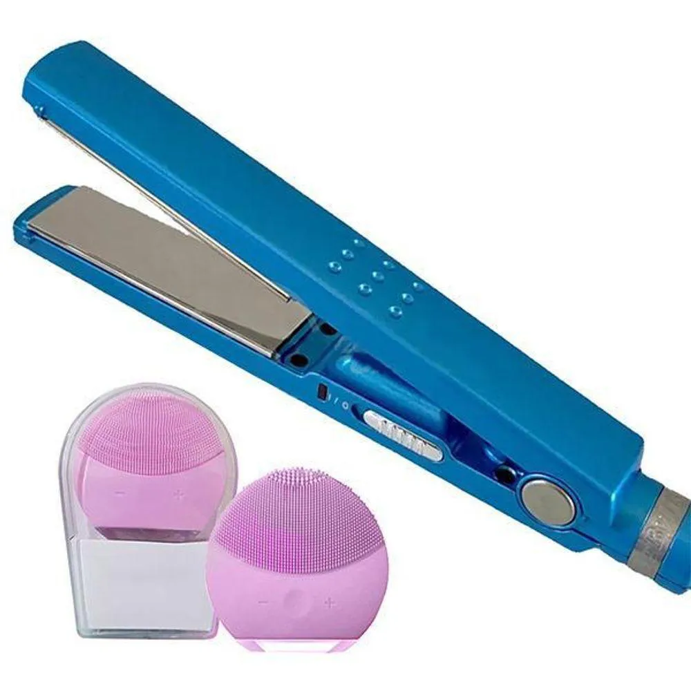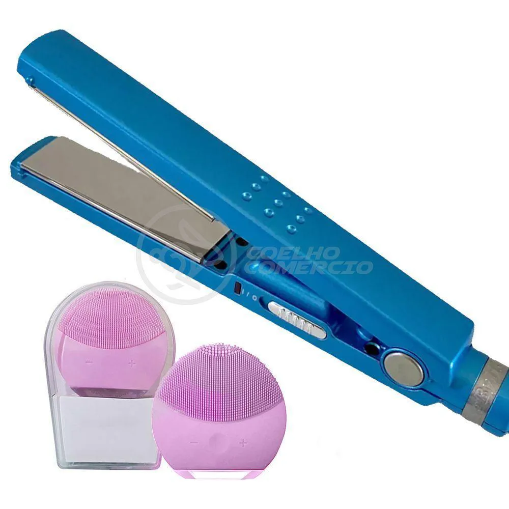 Kit 1 Prancha Nanotitanium + 1 Esponja Facial Rosa Bebê Nº24