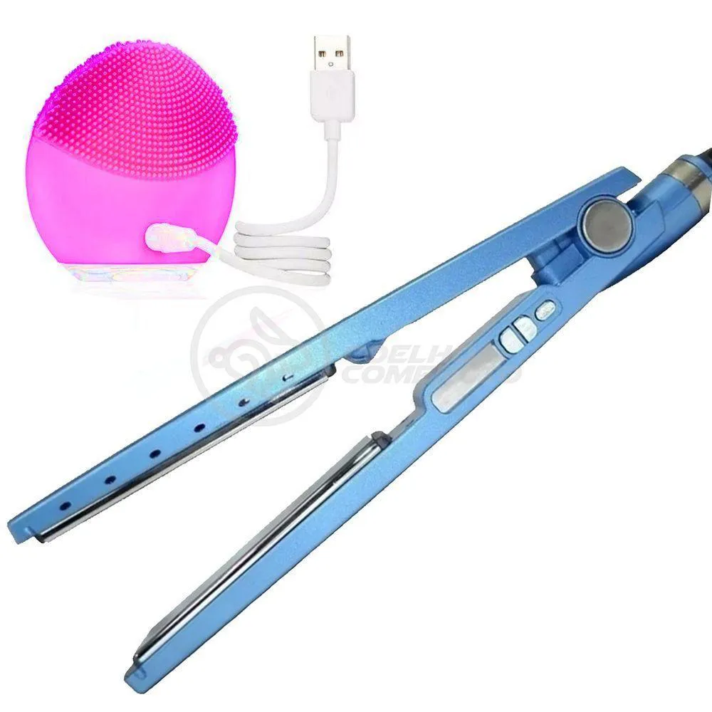 Kit 1 Prancha Nanotitanium + 1 Esponja Facial Rosa Bebê Nº27