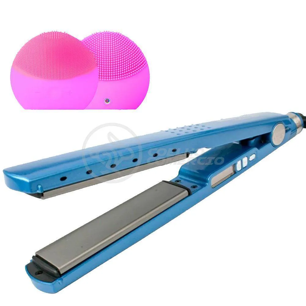 Kit 1 Prancha Nanotitanium + 1 Esponja Facial Rosa Bebê Nº28