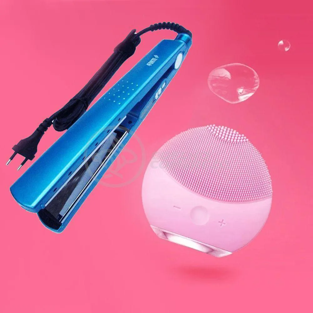 Kit 1 Prancha NanoTitanium + 1 Esponja Facial Rosa Bebê Nº28