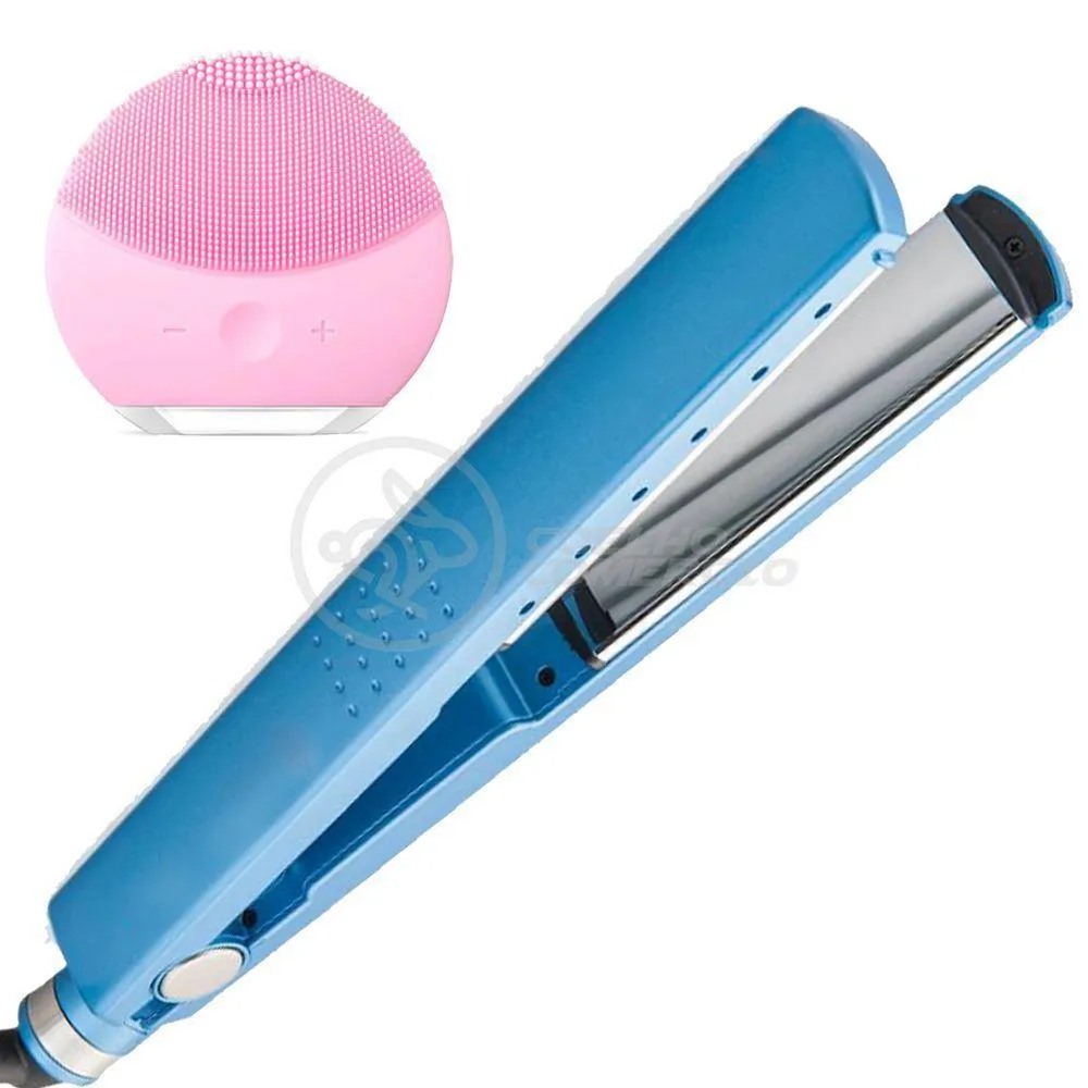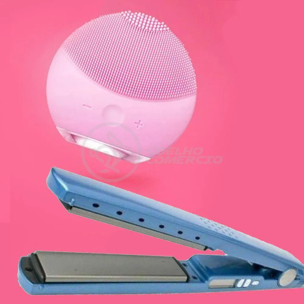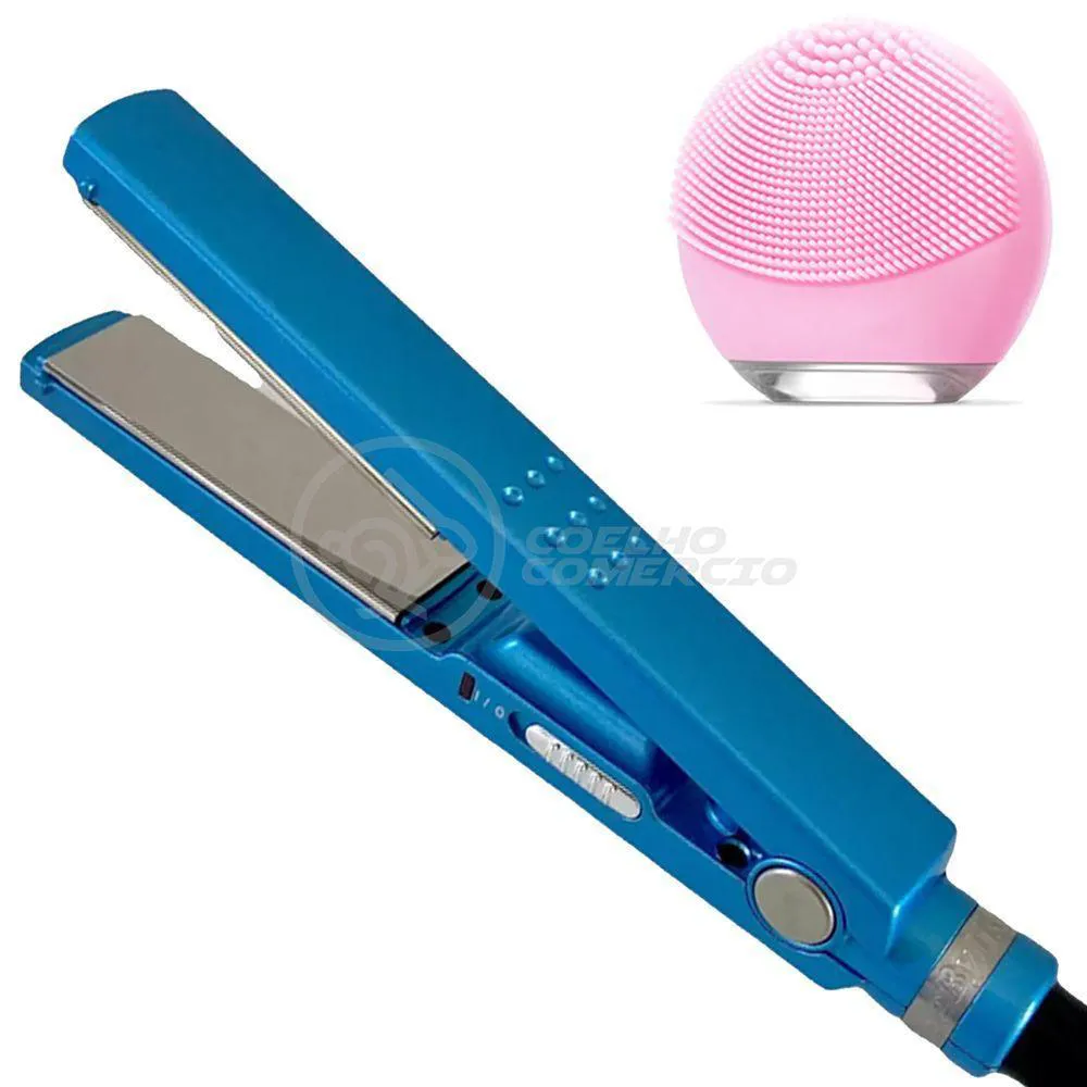 Kit 1 Prancha Nanotitanium + 1 Esponja Facial Rosa Bebê Nº32