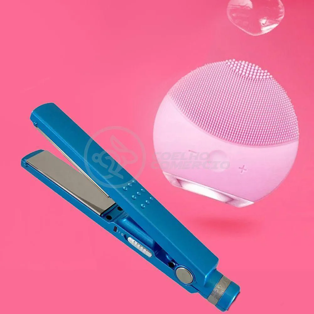 Kit 1 Prancha Nanotitanium + 1 Esponja Facial Rosa Bebê Nº33