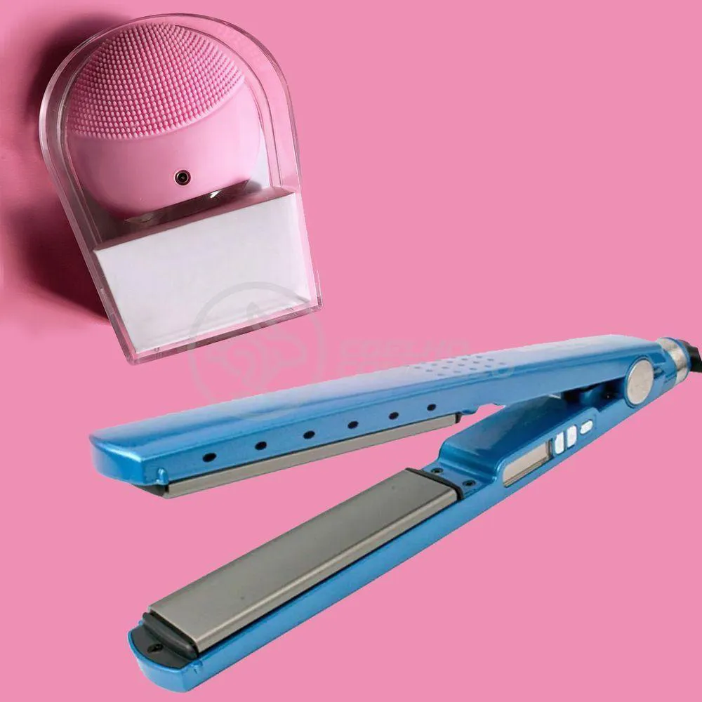 Kit 1 Prancha NanoTitanium + 1 Esponja Facial Rosa Bebê Nº6