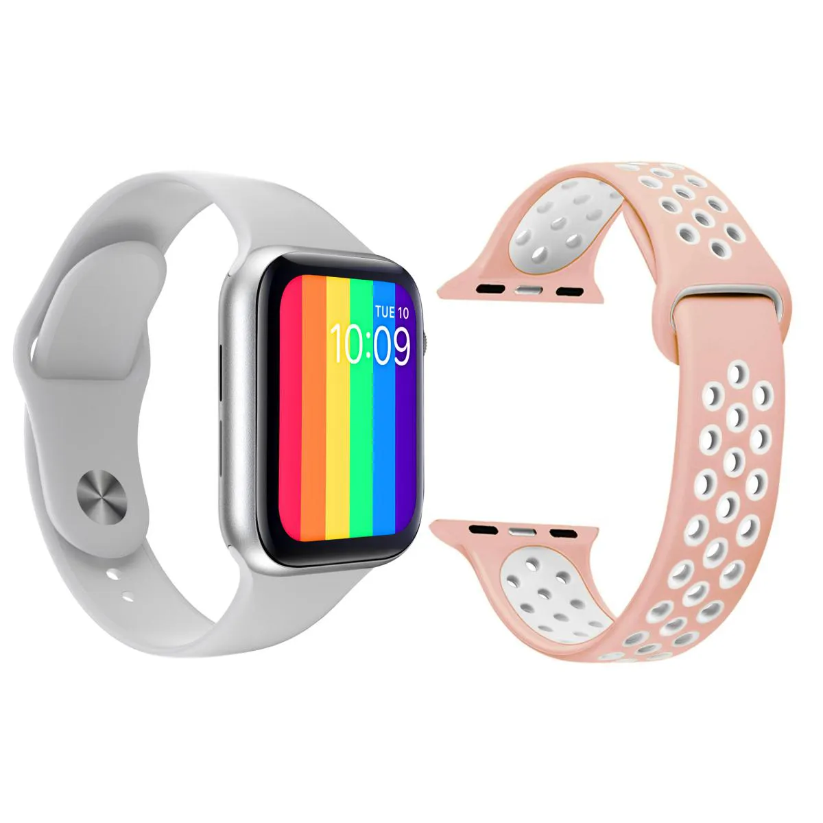 Kit 1 Relógio Inteligente SmartWatch W26 Tela Infinita Branco Android iOS + 1 Pulseira Extra Sport Rosa