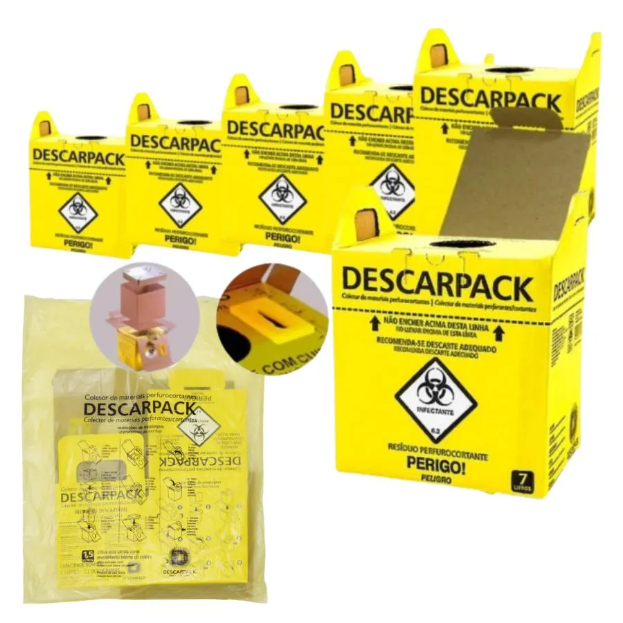 - Garante descarte correto e seguro de agulhas, seringas e outros materiais perfurocortantes.