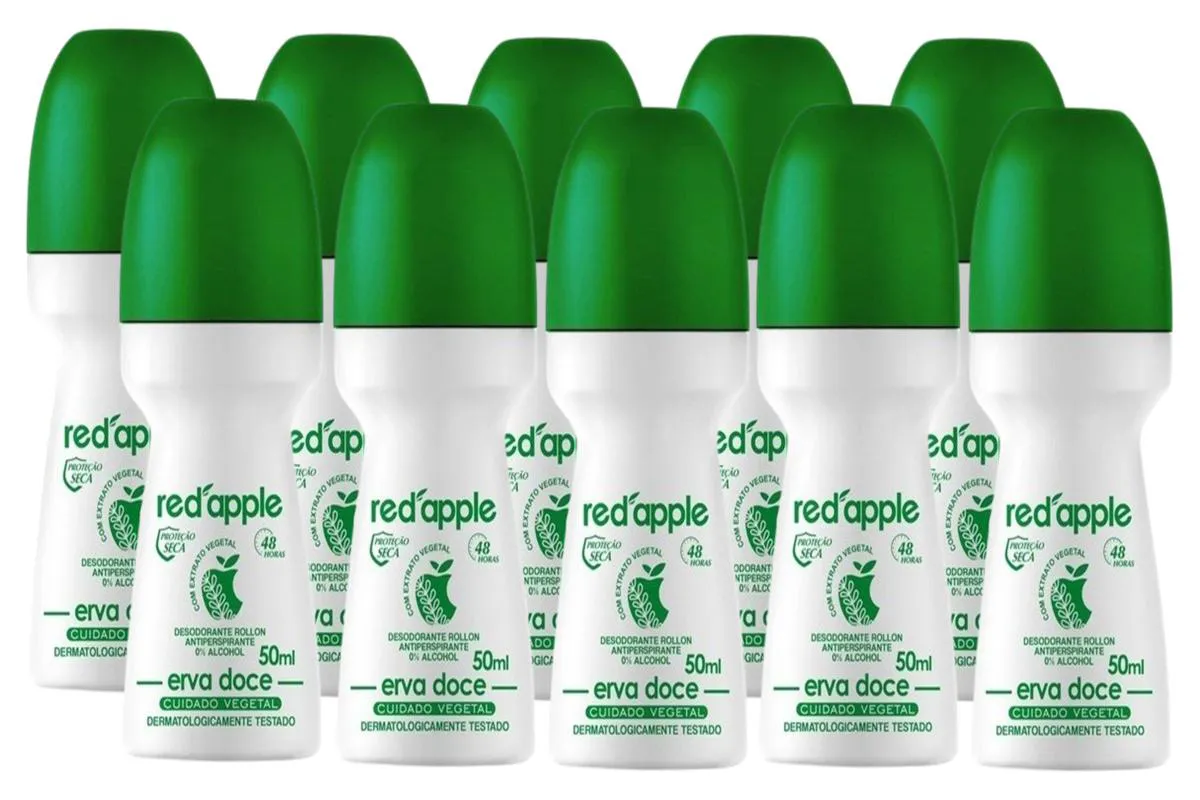 Kit 10 Desodorante Red Apple Roll On Erva Doce 50Ml