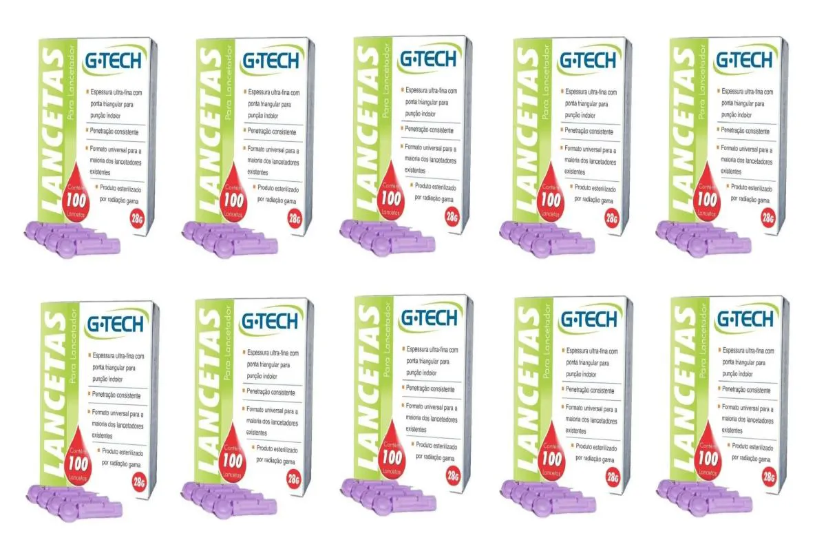 Kit 10 Lanceta para Lancetador Fina G-tech Glicemia 28g 100Un