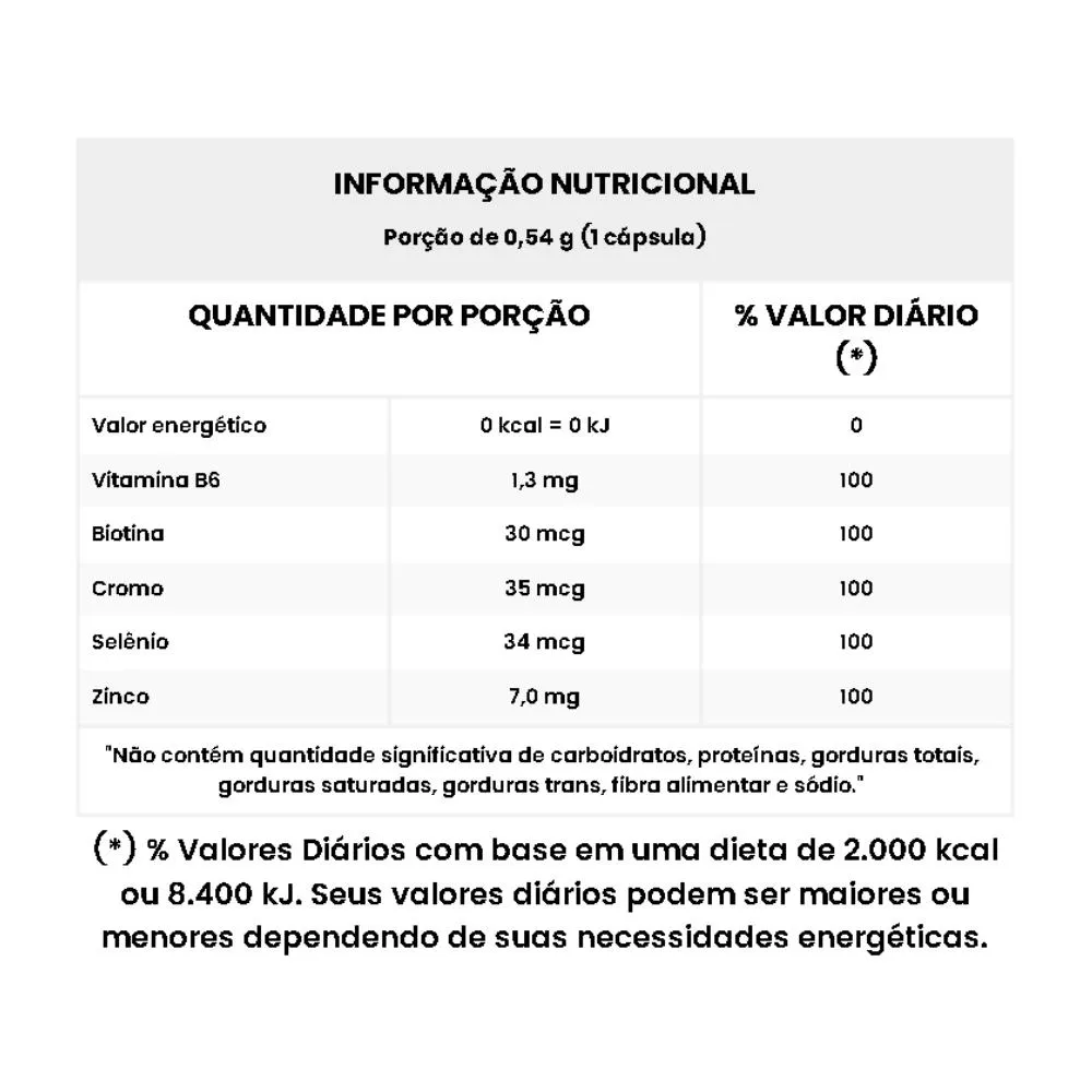 - Contém biotina, zinco e selênio.