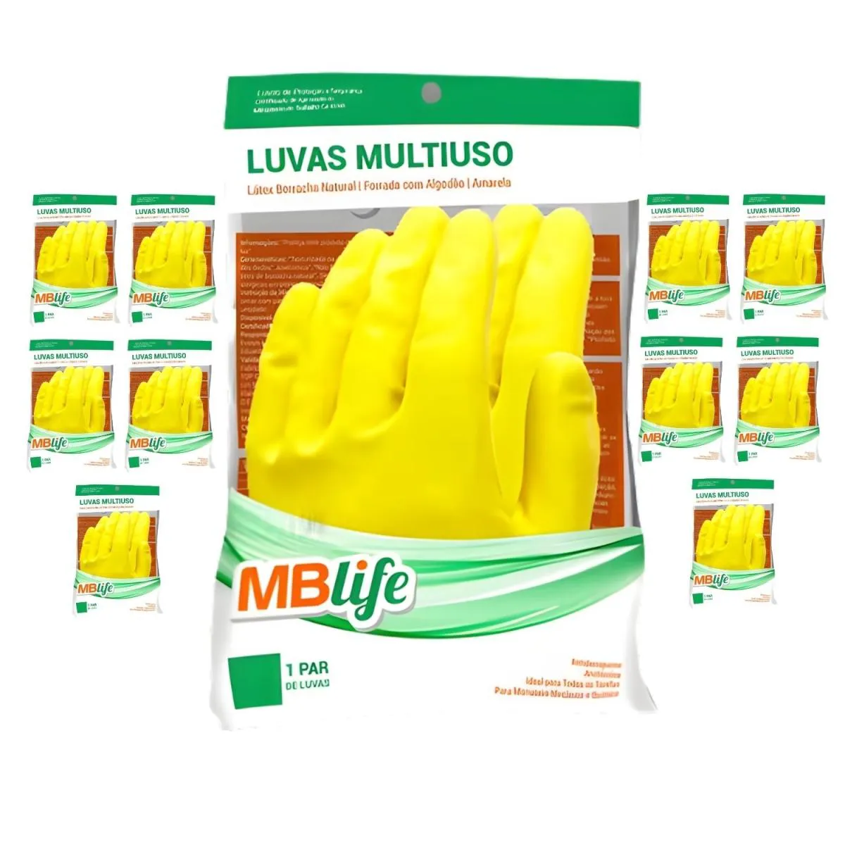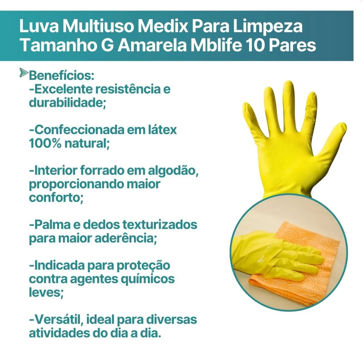 Kit 10 Pares Luva Multiuso Medix Limpeza Tamanho G Amarela