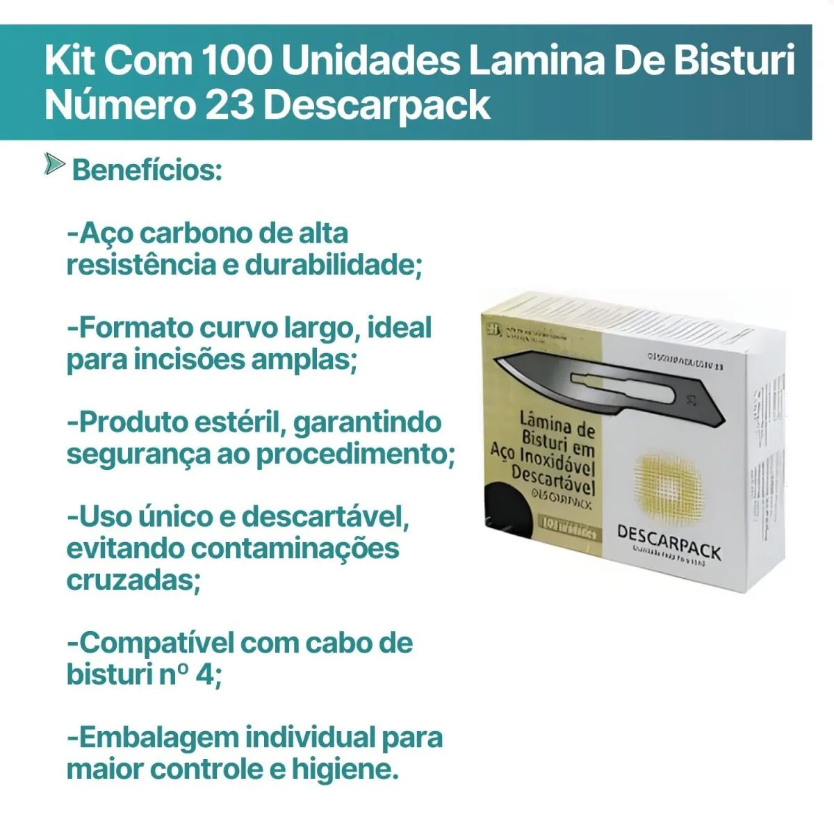 Lâmina de Bisturi Descartável Nº 23 ? Descarpack | Caixa com 100 Unidades