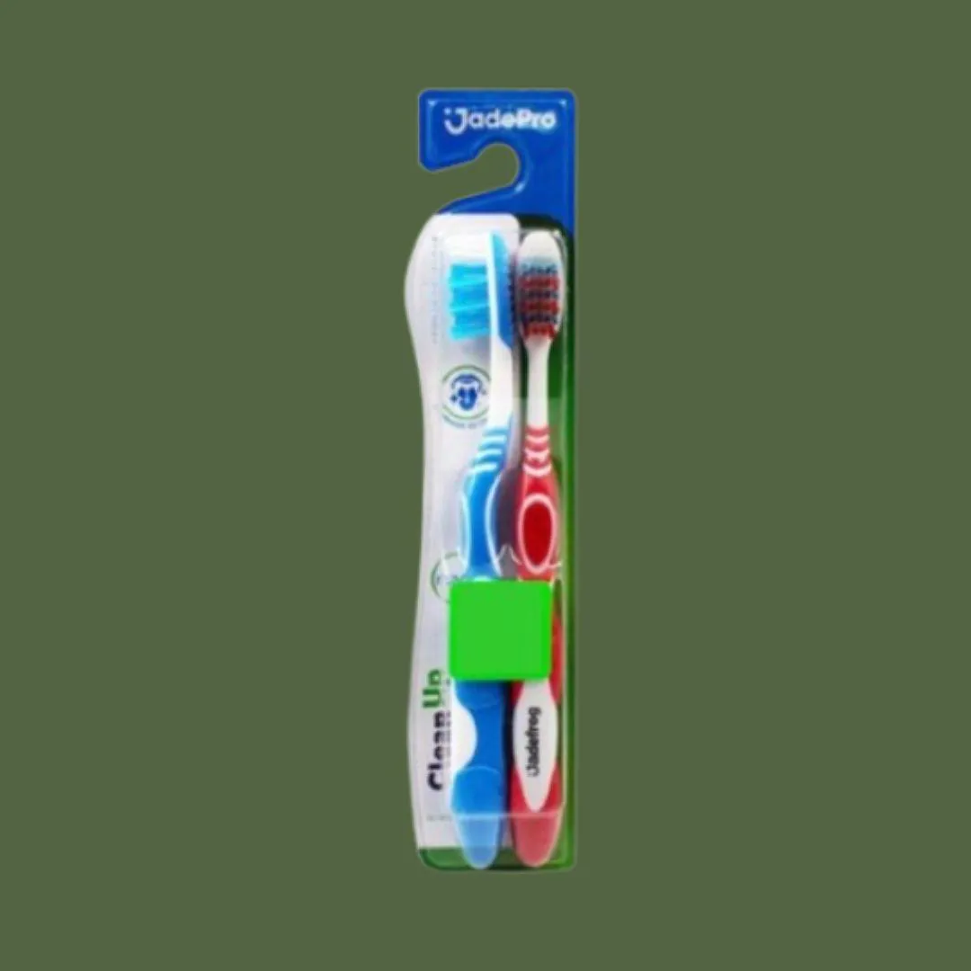 A escova dental Jadepro CleanUp possui as cerdas macias e cruzadas para remover mais placas e ter um maio alcance , com limpador de língua.