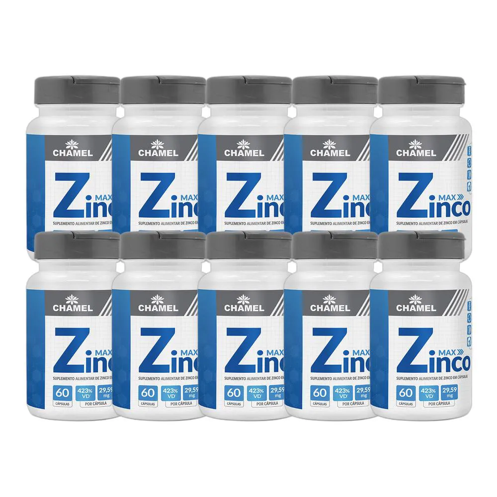 Kit 10x vitamina Max Zinco 29,59mg 60 Cps - CHAMEL