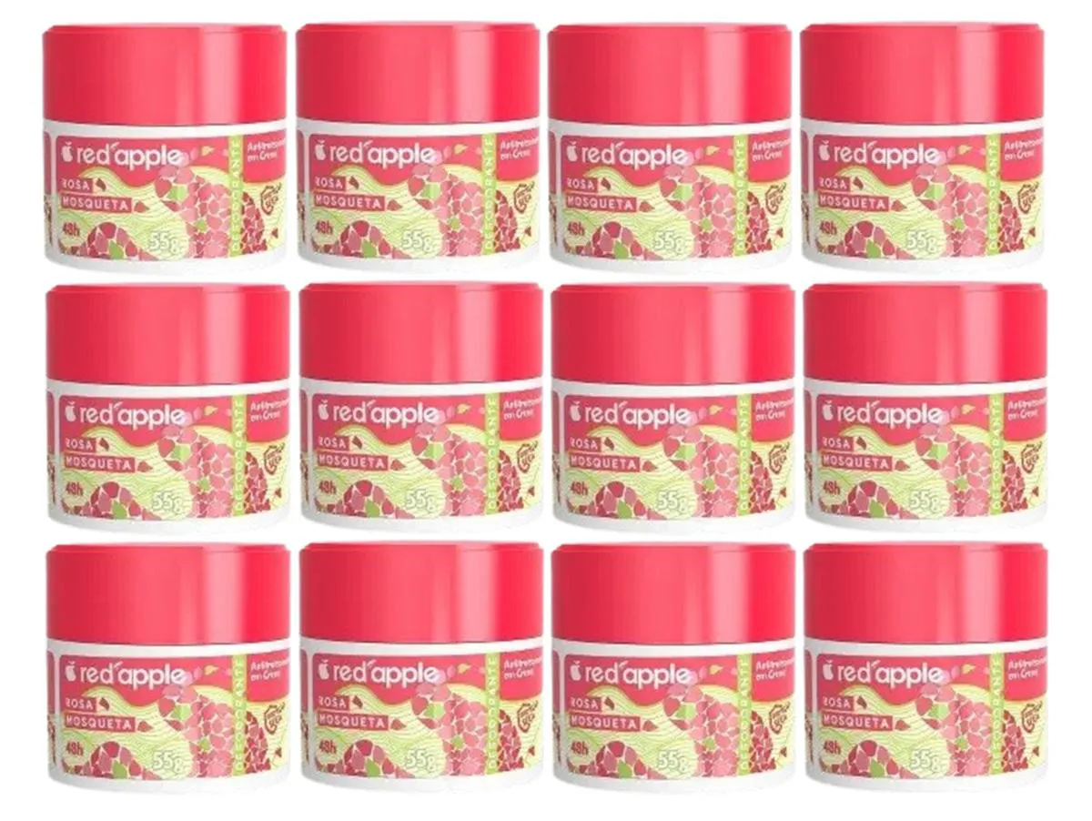 Kit 12 Desodorante Red Apple Em Creme Rosa Mosqueta 55g
