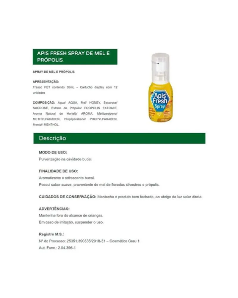 Kit 12 Unidades Aromatizante Bucal Apis Fresh Mel e Própolis Spray 35ml Arte Nativa -