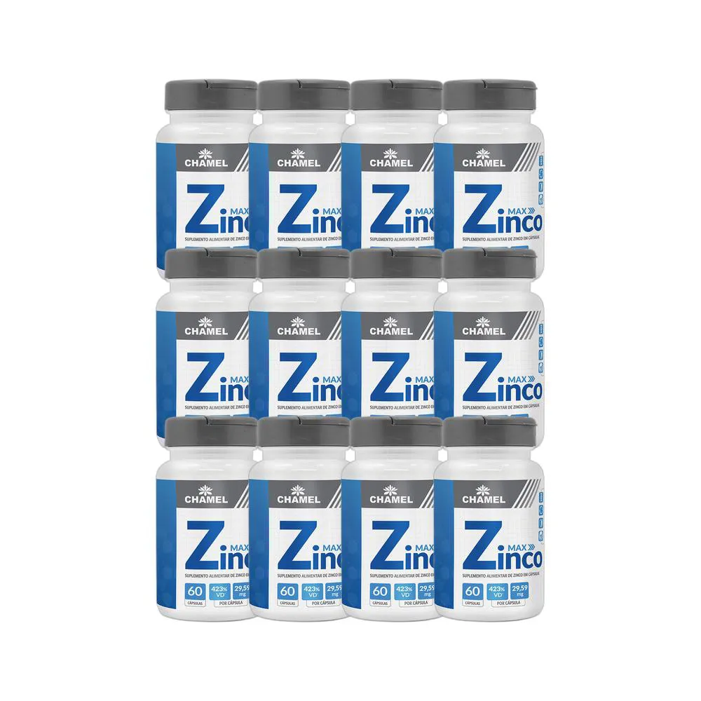 Kit 12x vitamina Max Zinco 29,59mg 60 Cps - CHAMEL