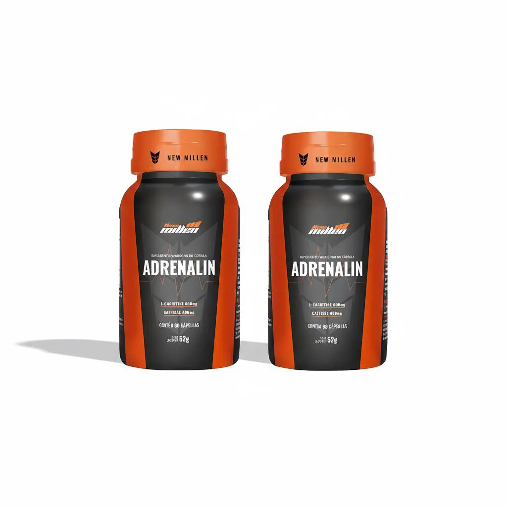 O Adrenalin da New Millen é um suplemento termogênico potente, formulado com L-Carnitina e Cafeína para acelerar o metabolismo, aumentar a queima de gordura e proporcionar mais disposição durante os treinos. Cada porção fornece 600mg de L-Carnitina, que auxilia na quebra de gordura e retarda a fadiga, e 400mg de Cafeína, que acelera o metabolismo e oferece energia extra. Ideal para quem busca emagrecimento, definição muscular e maior resistência física. Composição e Ingredientes - L-Carnitina: 600mg por porção - Cafeína: 400mg por porção - Excipiente: Triglicerídeos de cadeia média (TCM) - Cápsula: Gelatina, corante artificial eritrosina, azul brilhante e amarelo tartrazina Benefícios - Acelera o metabolismo: Promove a queima de gordura de forma eficaz. - Aumenta a energia: Proporciona mais disposição para treinos intensos. - Resistência física: Auxilia na melhoria da resistência e combate à fadiga. Sugestão de Uso Ingerir 1 cápsula, 2 vezes ao dia, sendo uma antes do treino, ou conforme orientação profissional.