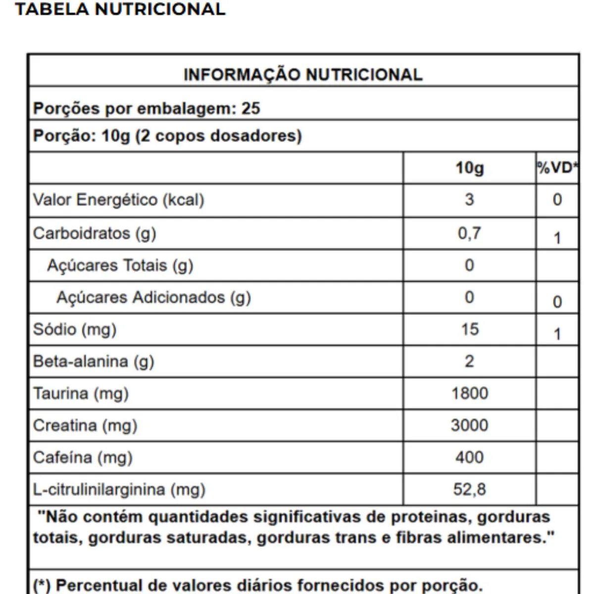 - Consumir uma hora antes do treino, com 150ml de água.