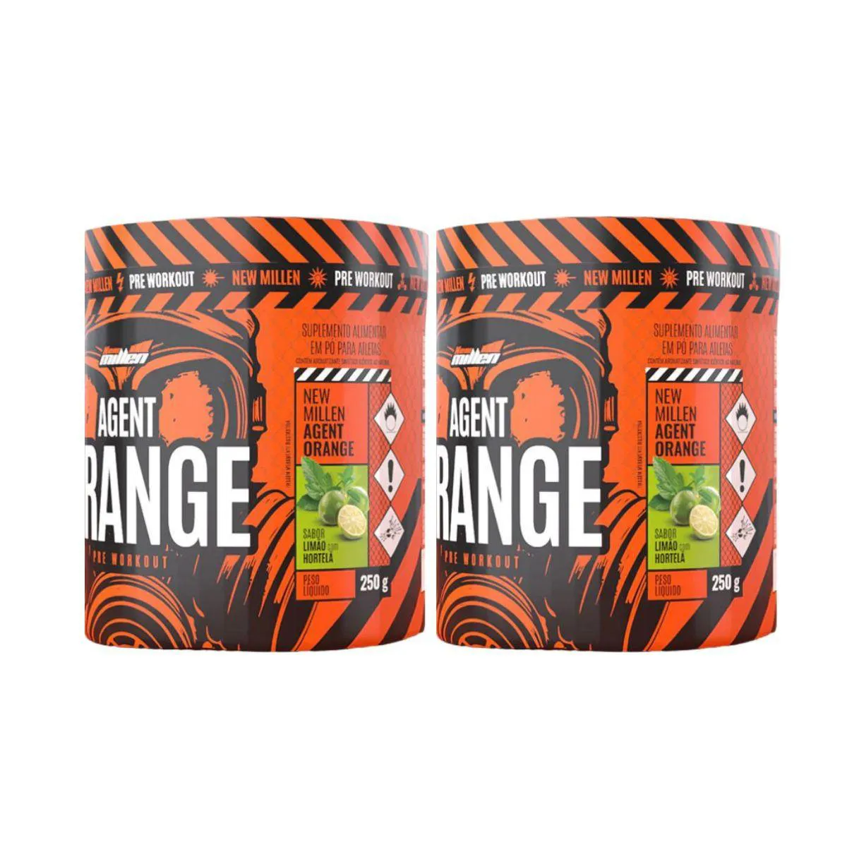 KIT 2 AGENT ORANGE LIMÃO COM HORTELÃ pré treino FOCO E RESILIÊNCIA 250G NEW MILLEN