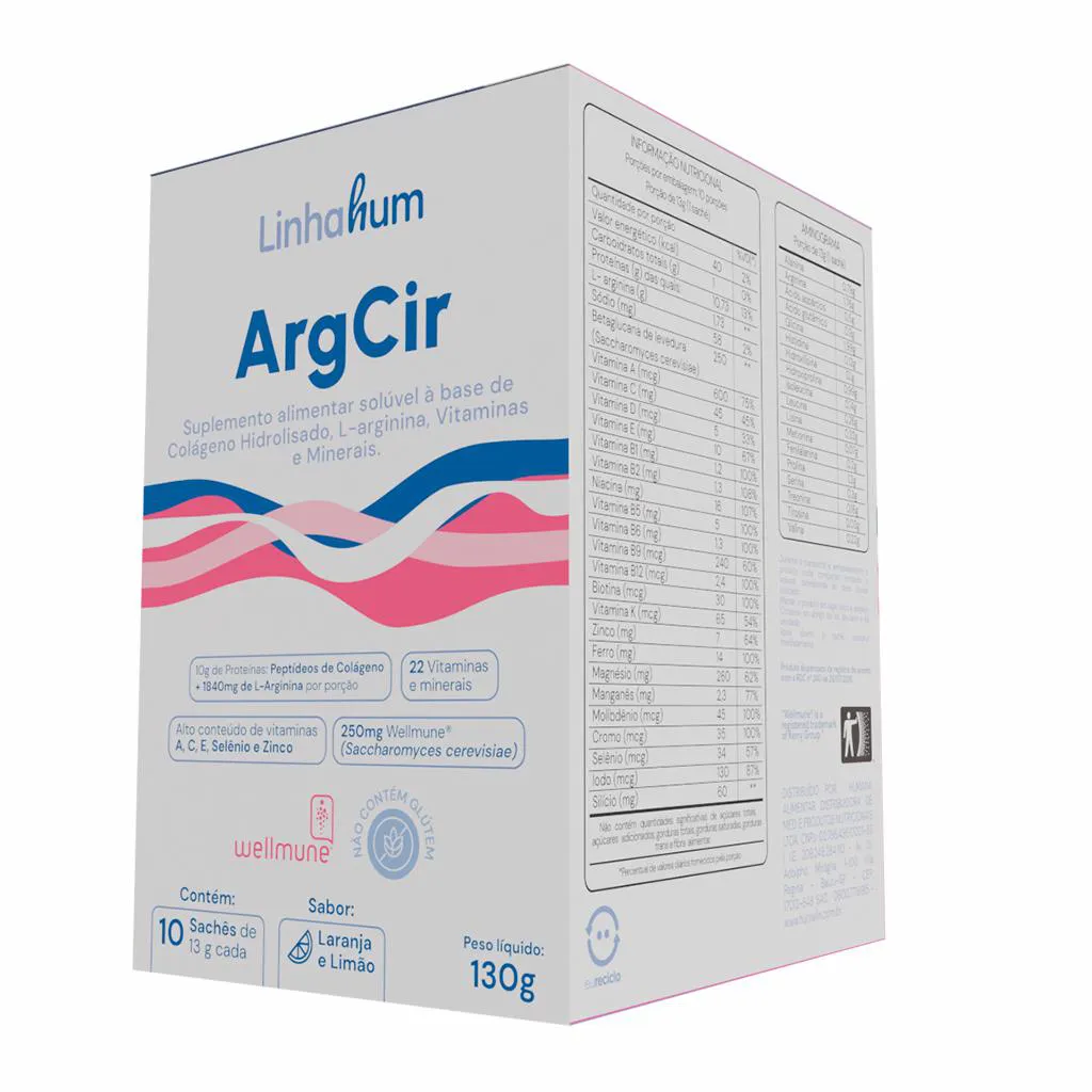 Argcir é um suplemento alimentar em pó, rico em proteínas (10 g), que combina peptídeos de