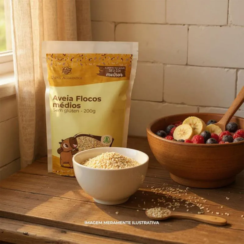 Aveia em Flocos Médios Sem Glúten da Tainá Alimentos é um cereal integral premium, cuidadosamente processado para preservar seu valor nutricional. Com textura macia e adaptada ao paladar, é ideal para o consumo diário ou a inclusão em receitas variadas desde mingaus até preparos mais elaborados.