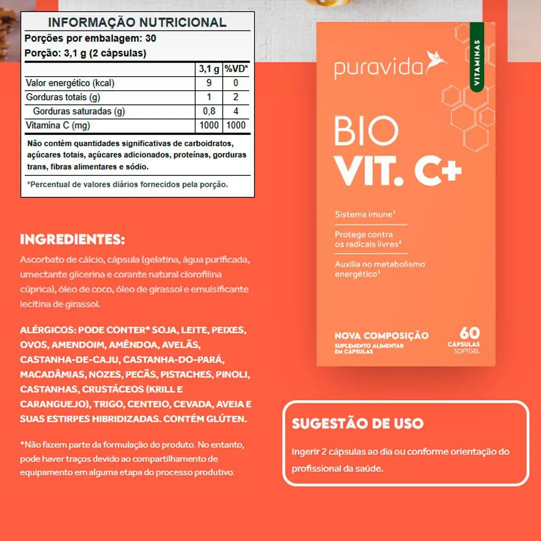 Kit 2 Bio Vit C+ Suplemento Alimentar - 60 Caps - Puravida